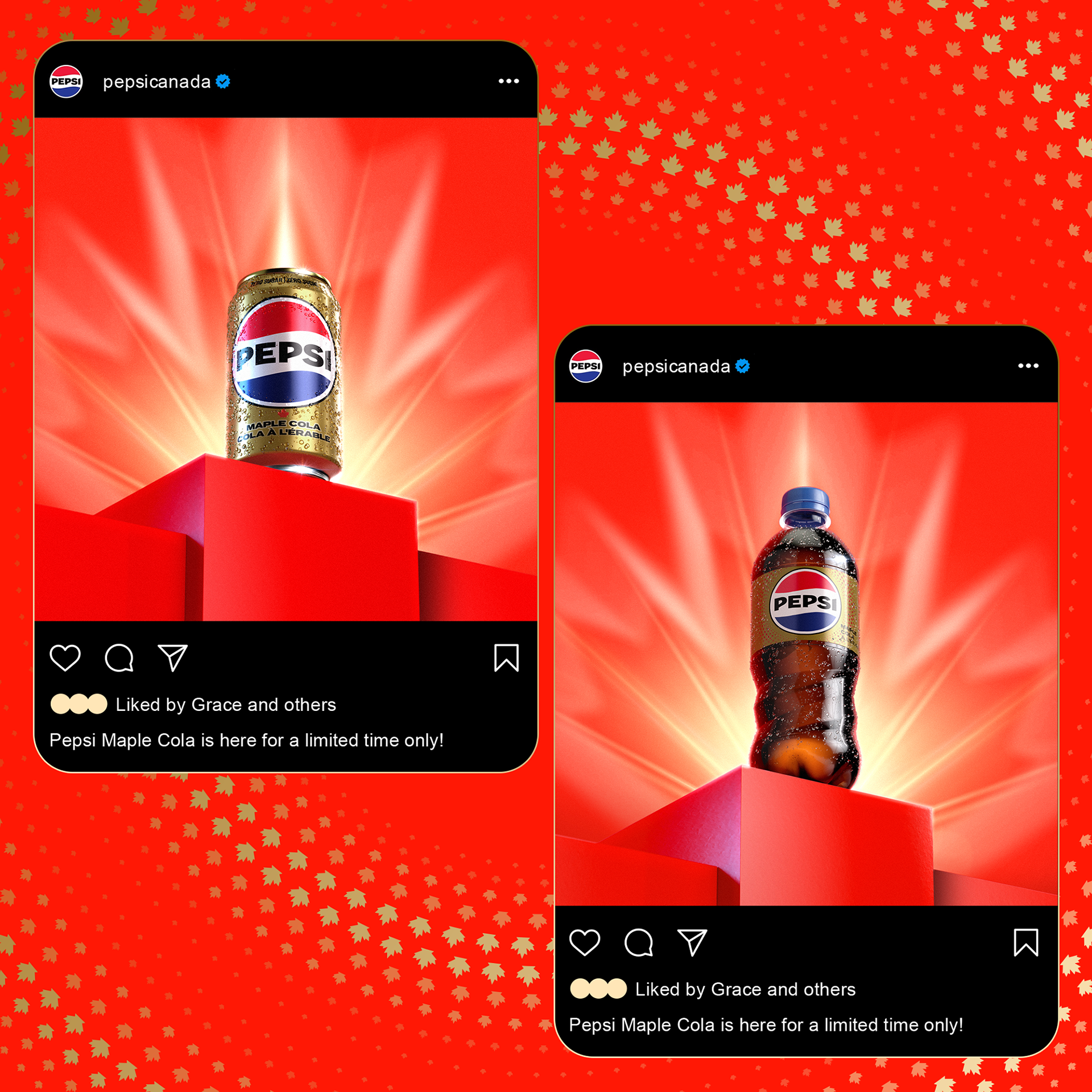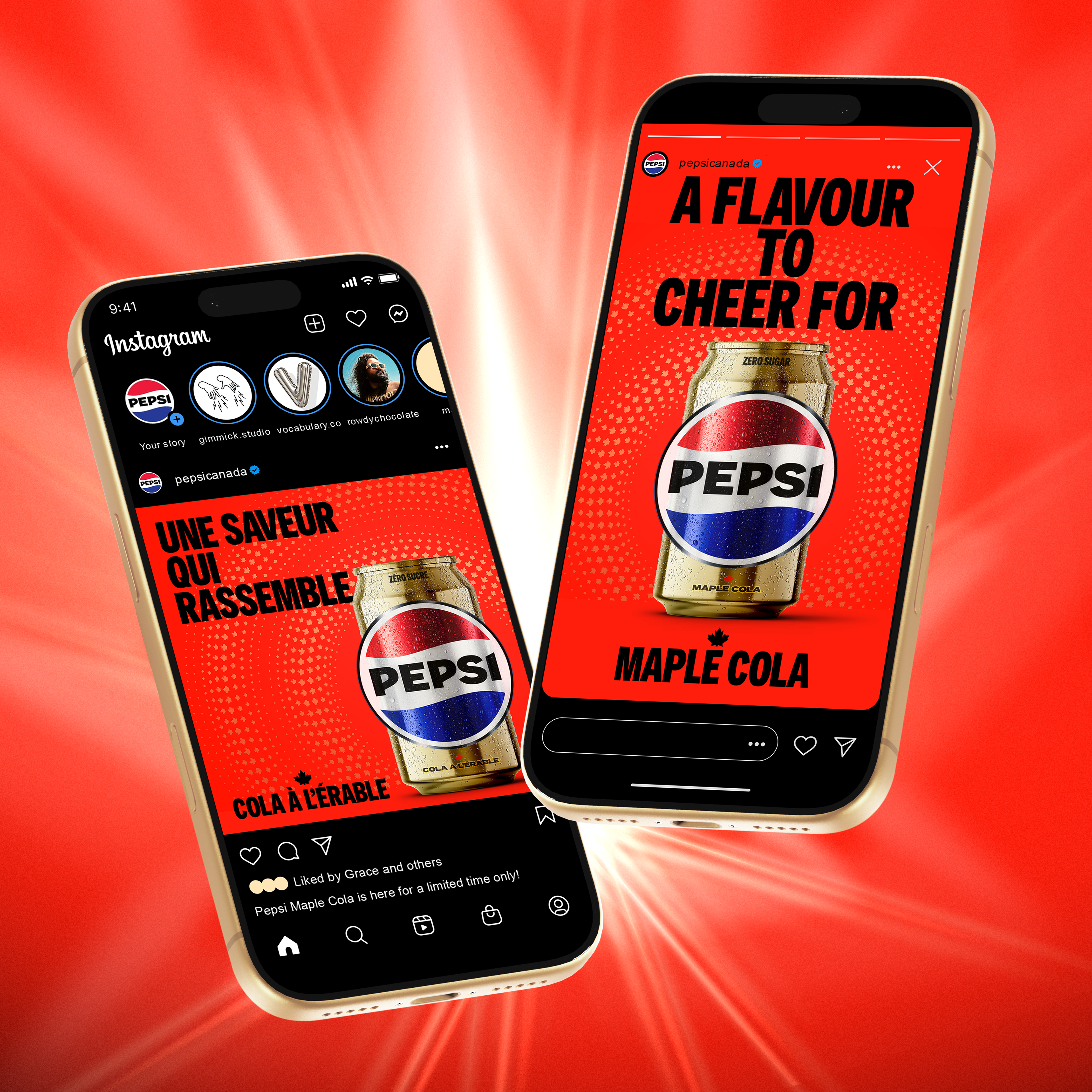 PepsiCo Canada chose to launch Pepsi Maple around the time of the 2026 Winter Olympics Milano, Cortina as an unofficial show of support for Team Canada. While direct associations with the Games were not permitted, the art direction draws on a blend of Olympic-inspired ambition and distinctly Canadian elements. This is reflected in the podium motif, symbolizing the pursuit of glory, and the subtle interplay of light shaped like a maple leaf on the red backdrop.